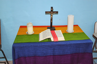 - Uma faixa com os dizeres: "Se amares teu Deus, se andares em seus caminhos, se observares seus mandamentos, suas leis e seus costumes, viverás e te multiplicarás". (Dt 30,16)