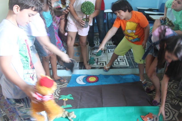 A seguir, disse aos pequeninos: Neste momento, vamos esquecer as modificações, transformações e poluições que o homem realizou. Há muita coisa destrutiva, mas há também muita coisa boa. Temos o sol que produz luz e calor e que ajuda as plantas a crescer; e quantas frutas gostosas: manga, acerola, laranja, banana, mamão e tantas outras! (Perguntei se conheciam outras e deixei que falassem). E a variedade de flores que possuímos, suas cores maravilhosas! E a água limpa que mata a nossa sede!