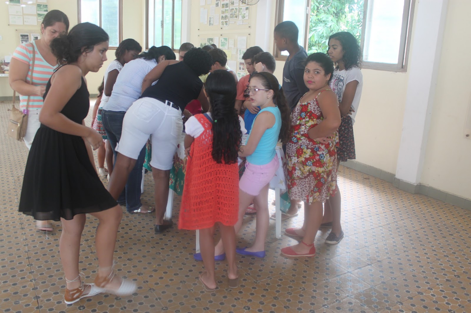 No Salão Paroquial, cachorro quente, pastel, bolo de chocolate e refrigerante para comemorar o nosso último dia de catequese do ano.