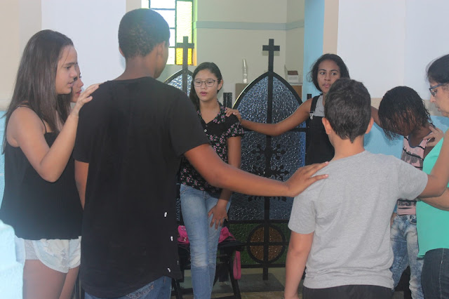Em seguida, com a mão no ombro do coleguinha, eles rezaram uns pelos outros, pedindo ao Senhor que abençoe a todos nós e de modo especial, ao amiguinho que estava ao seu lado, e que ele siga sempre os passos de Jesus, acolha sua palavra e viva sempre na amizade com Ele; e que o Senhor fortaleça sua fé, ilumine sua vida e dê a ele muita paz.
