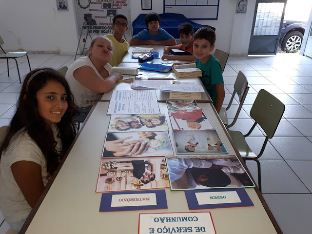 Finalizando, convidei a turma para se comprometer com Jesus, pois Ele chama cada um a ser seu discípulo. Todos podemos e devemos ser discípulos de Jesus. Não só os padres, os bispos, os diáconos ou as freiras e outros consagrados foram chamados por Jesus para segui-lo. Jesus chama cada um, e devemos estar abertos para acolher o seu apelo. E para ser discípulo não é necessário tornar-se um padre. É necessário somente amar a sua Palavra e acreditar na sua proposta. Por isso hoje, somos convidados a renovar o nosso compromisso de discípulos de Jesus.