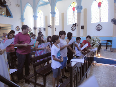 Nesse sábado, tivemos Celebração da Palavra com os catequizandos e seus familiares. Terminada a celebração, fomos para o salão paroquial, onde fizemos uma pequena confraternização em homenagem ao Dia das Crianças; comemoração atrasada em razão do feriado da semana passada, em que nossa Paróquia participou da romaria na Igreja Nossa Senhora do Pilar, aqui em nossa cidade.