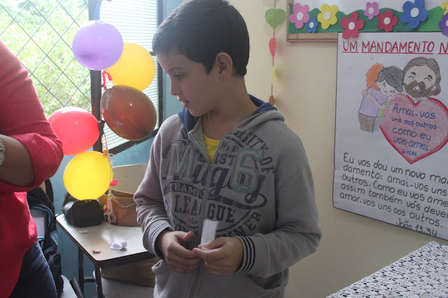 - Você vai pedir um catequizando para levantar e estourar a bola. Ele vai ler o que está escrito. Se for algum Mandamento, dê parabéns para ele e depois presenteie com algum mimo de sua preferência, que pode ser uma balinha, bombom ou docinho. Mas se não for algum Mandamento, não deixe de dar um mimo (pode ser uma balinha).
