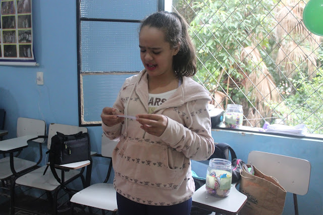 - Agora você coloca essas tirinhas dentro de bolas de gás e depois enche-as, amarre-as e arrume onde ficar melhor no seu ambiente de encontro (pode pedir ajuda às crianças... Elas vão gostar!)
