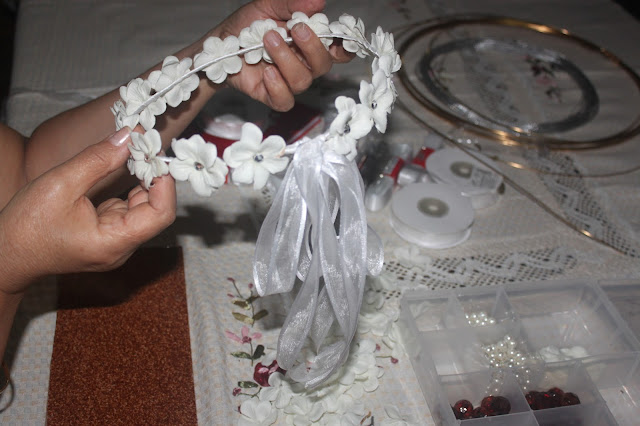 Foram dois meses de preparação e ensaios para a Coroação... Cuido de todos os detalhes com muito carinho (escolha do modelo das roupas, compra dos tecidos e dos acessórios...). Todos os arranjos da cabeça das meninas e as coroas dos anjinhos foram confeccionadas por mim. Amo fazer isso!
