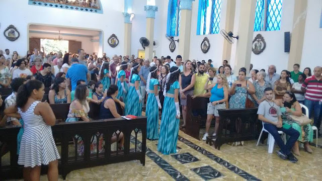 O clima era de muita alegria! As crianças estavam muito empolgadas para a apresentação que fariam em homenagem à nossa Mãezinha do Céu. Foram dois meses de ensaio! E quando chegou o momento, fizeram tudo certinho!